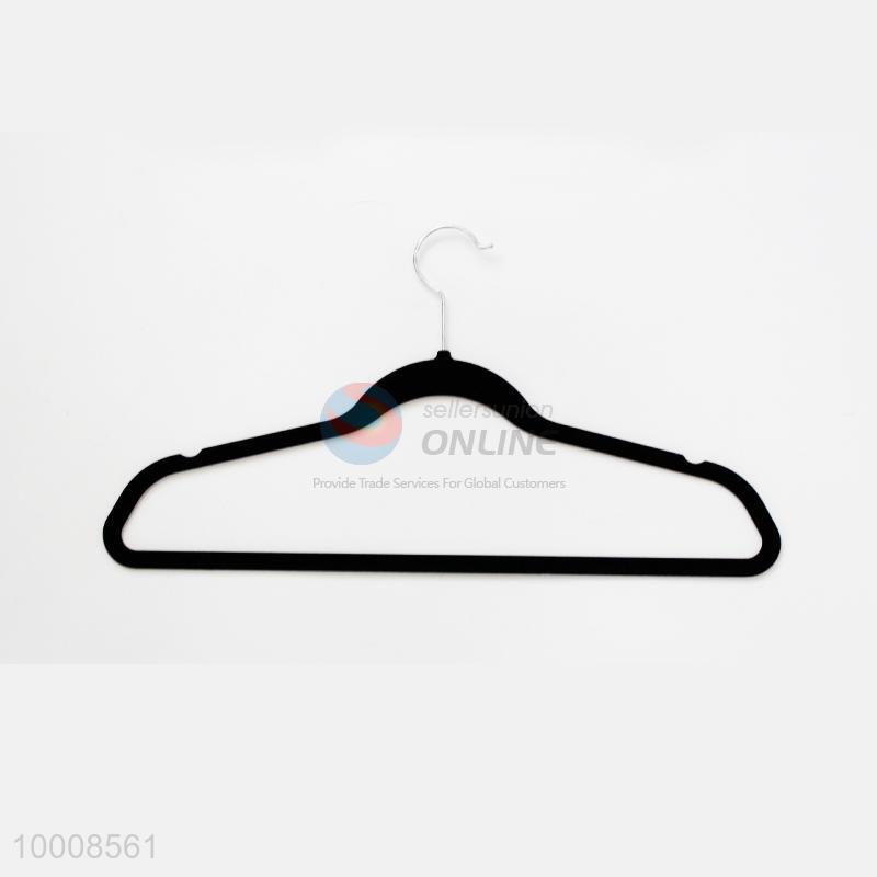 Wholesale High Quality Black Plastic Clothes Hanger With Flocking