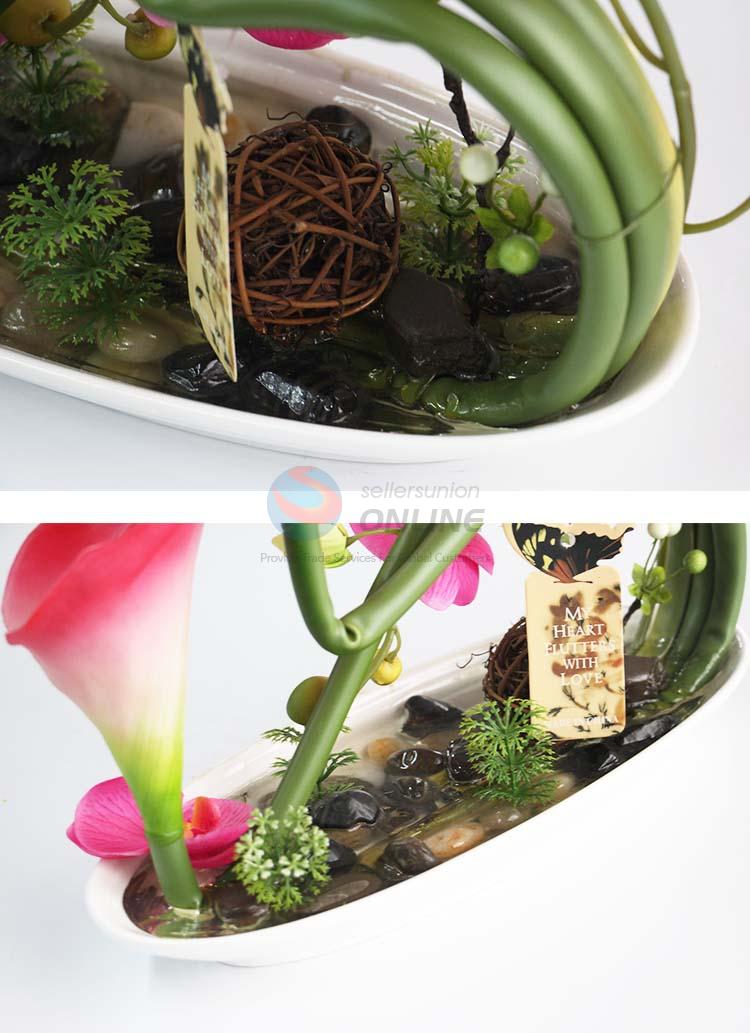 Pink Lily with Butterfly Orchid Artificial Flower Bonsai Set for Home Office Shop Decoration