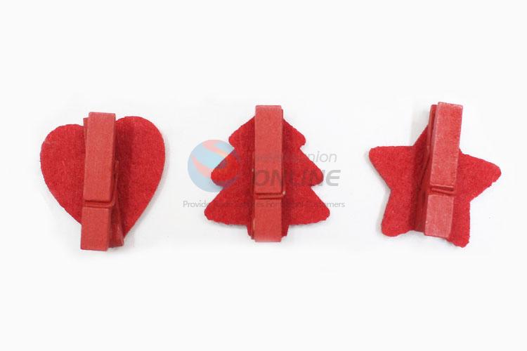 Wholesale Christmas Decoration Crafts Wood Clips with Red Love/Tree/Star Shape