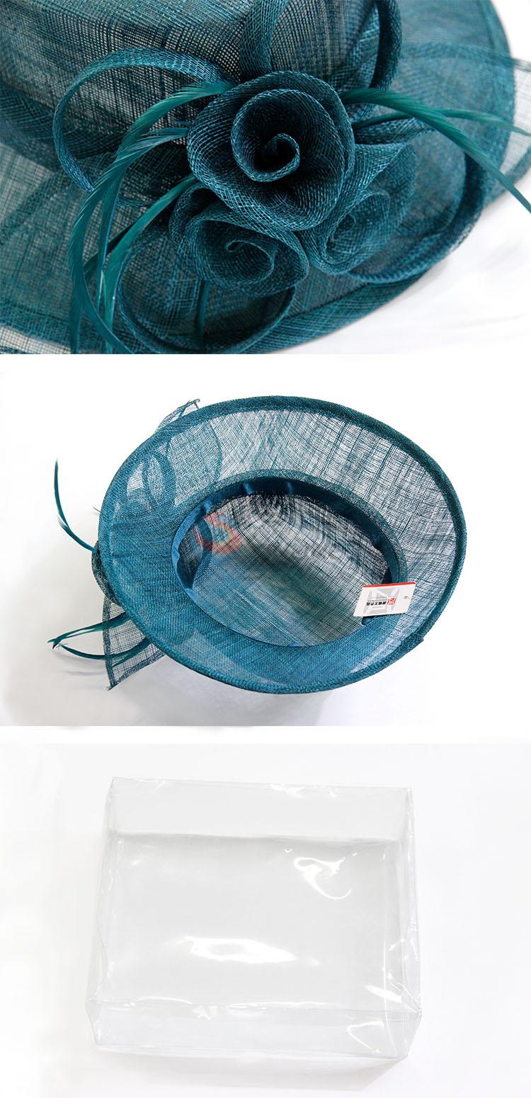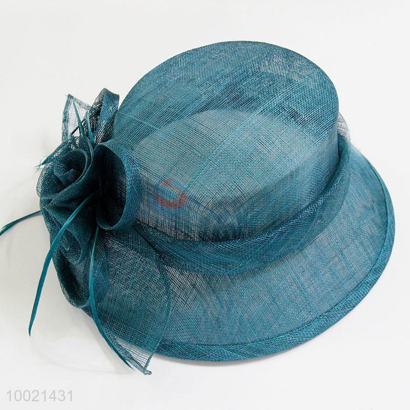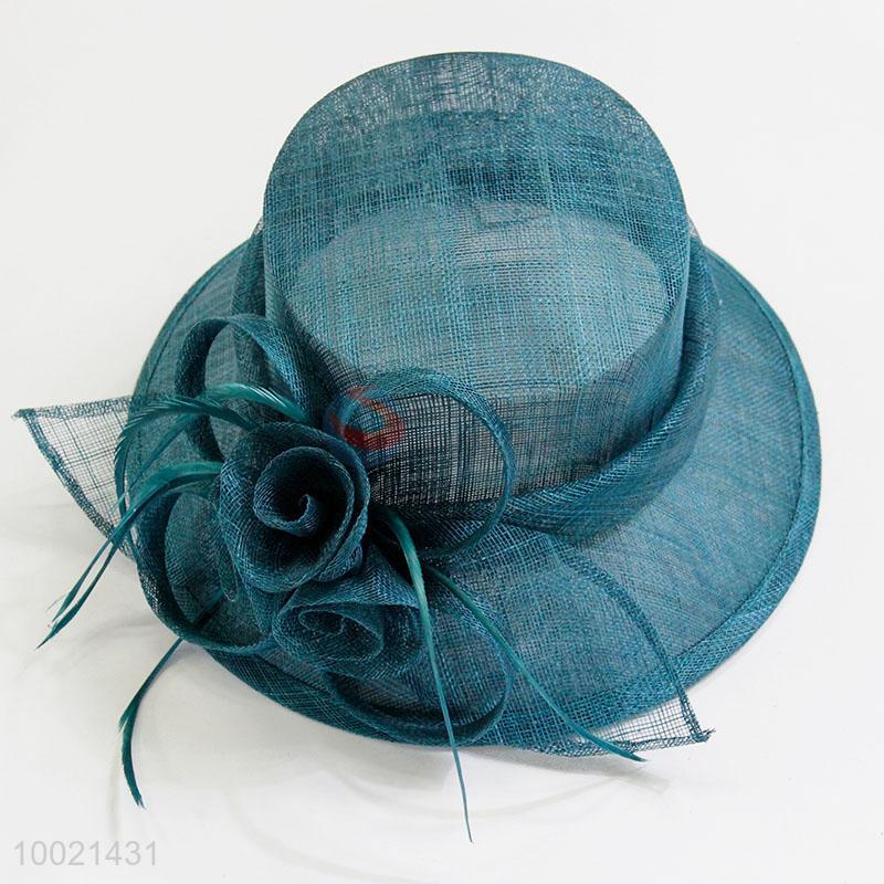 Blackish green women fashion flax hats with flower&feather decoration