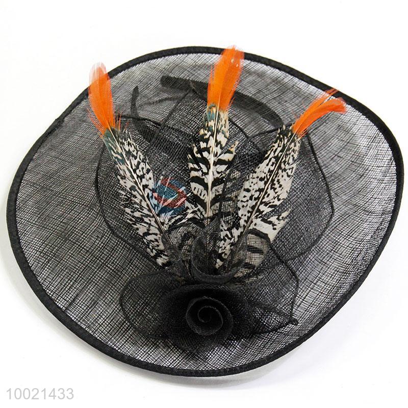 Vintage delicate black flax hats with feather hairbands