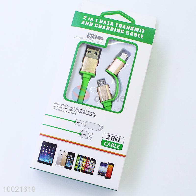 Green Dual Purpose 2 In 1 Data Transmit USB Cable