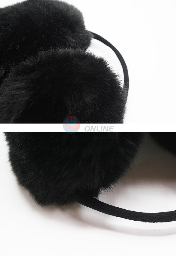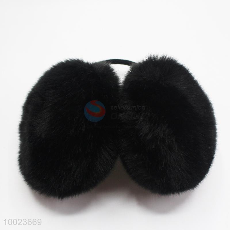 Black warm faux rabbit hair earmuff