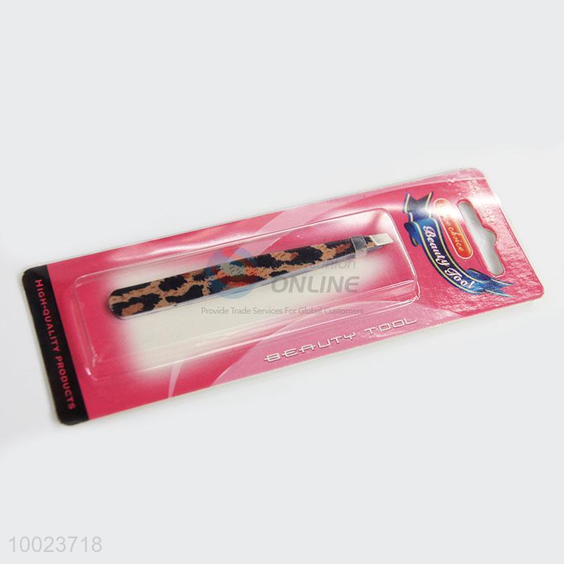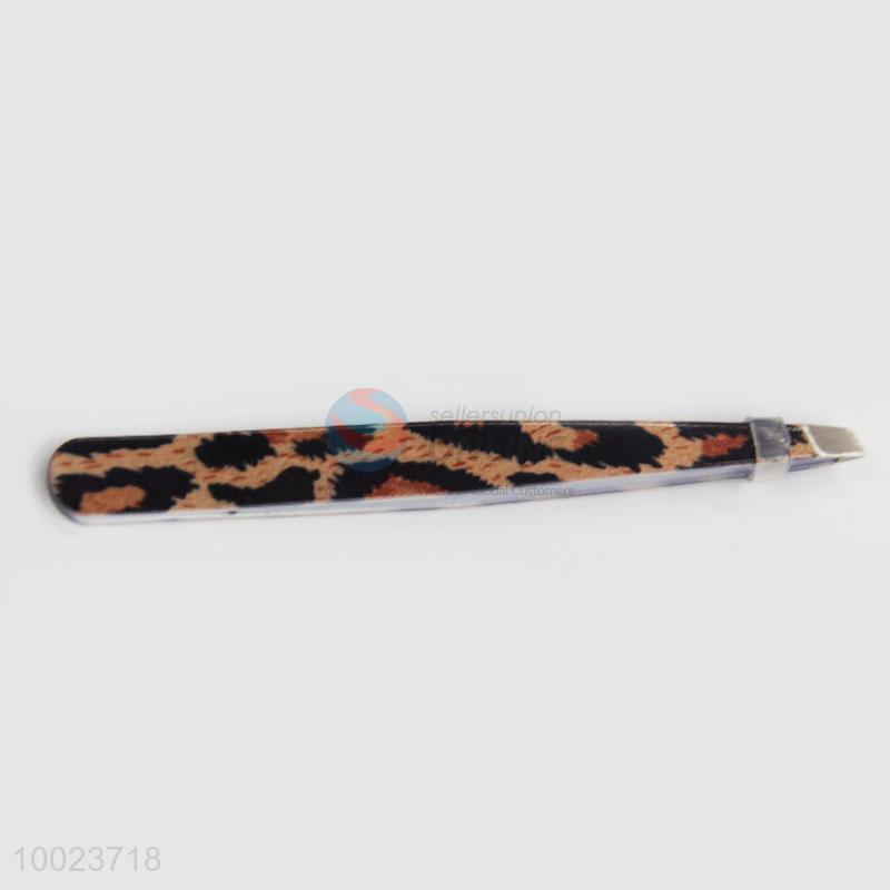 Wholesale Leopard Print Slice Make Up Tool Stainless Steel Eyebrow Tweezers