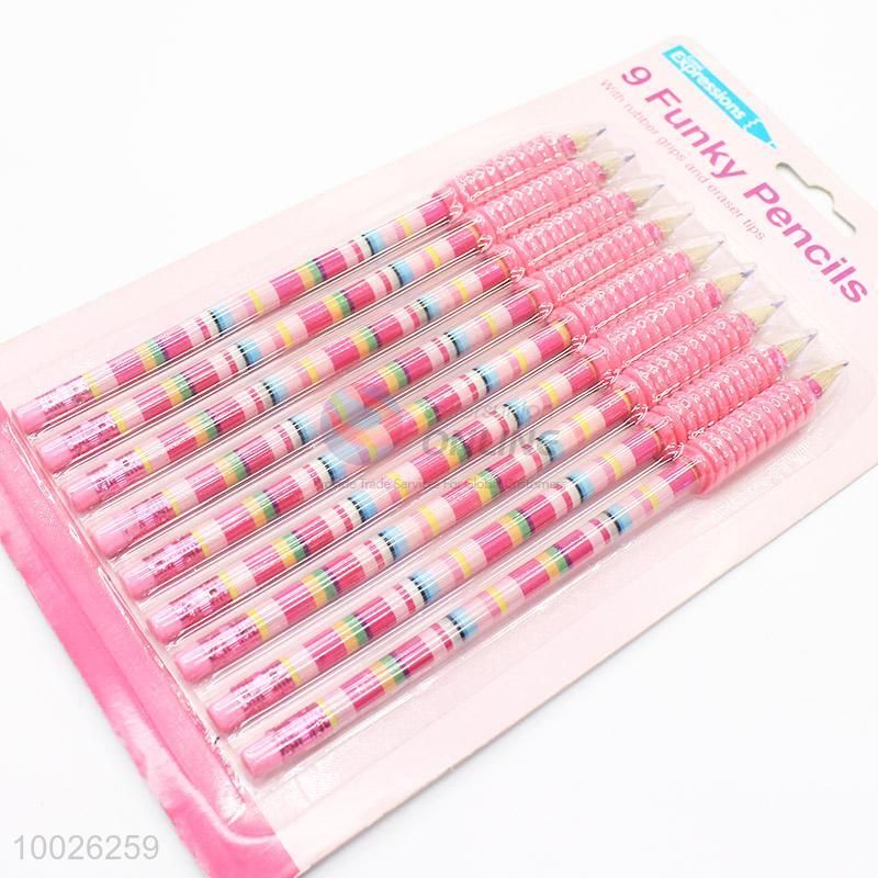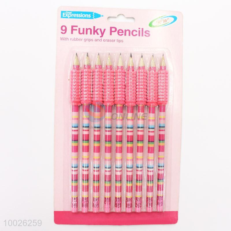 9 Funky Pencils with Rubber Grips and Eraser Tips