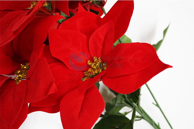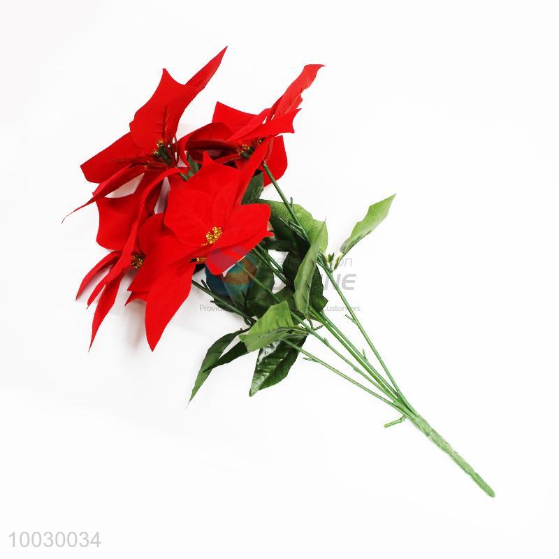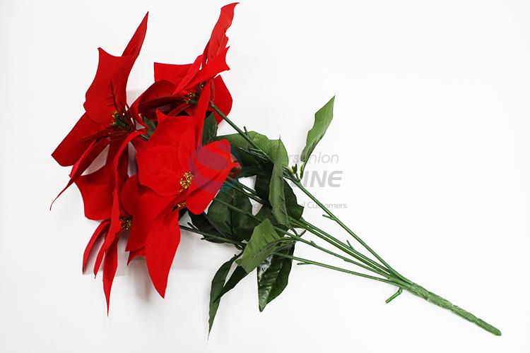 5 Heads Red Flower Decoration Artificial Flower For Chrisrmas