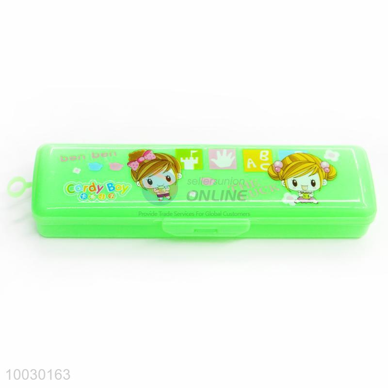 Beautiful Girls Pattern Green Transparent Plastic Pencil Box