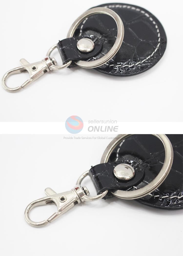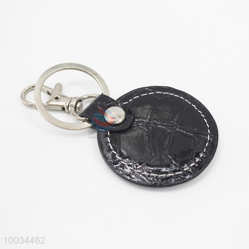 Round Black PU Key Chain