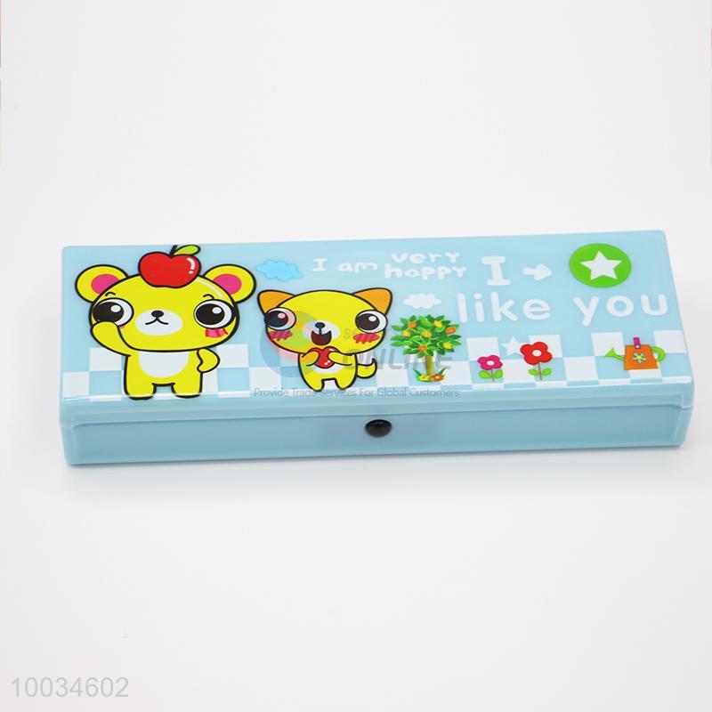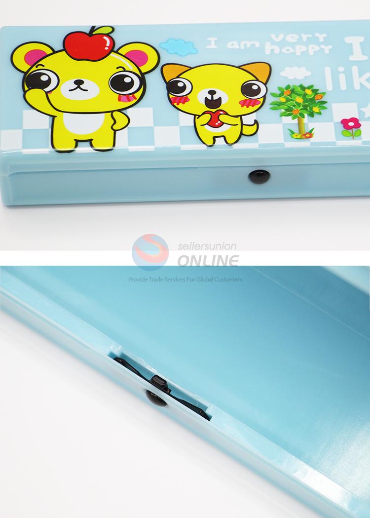 Blue student pencil case/box printed with cat