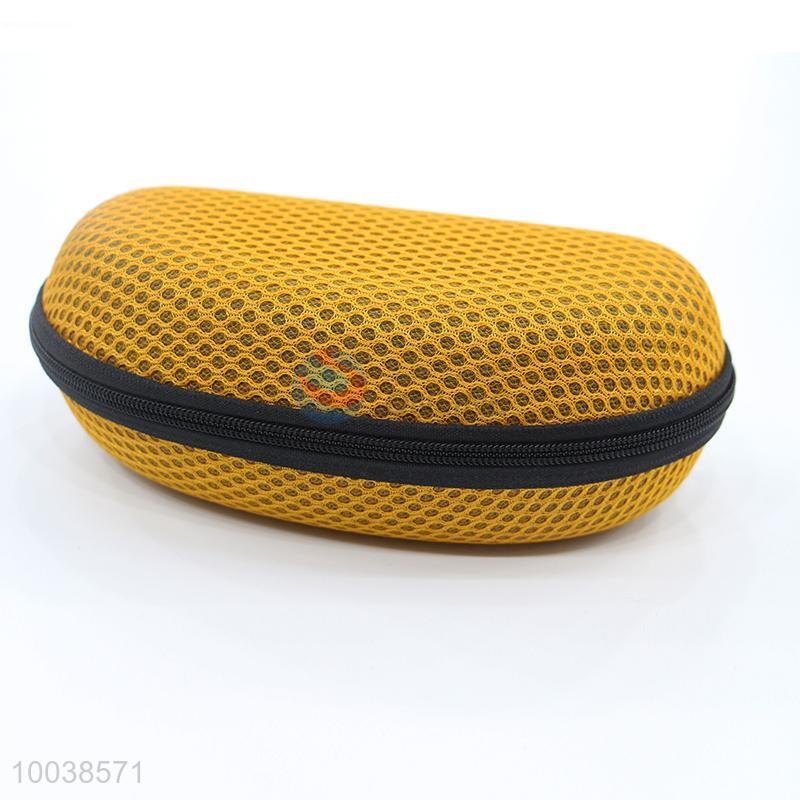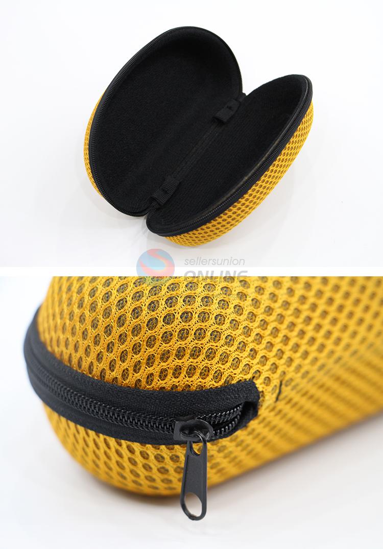 Yellow mesh cloth eye glasses/sunglasses case with zipper