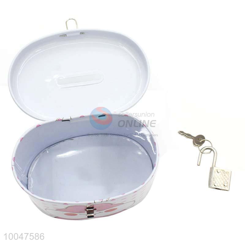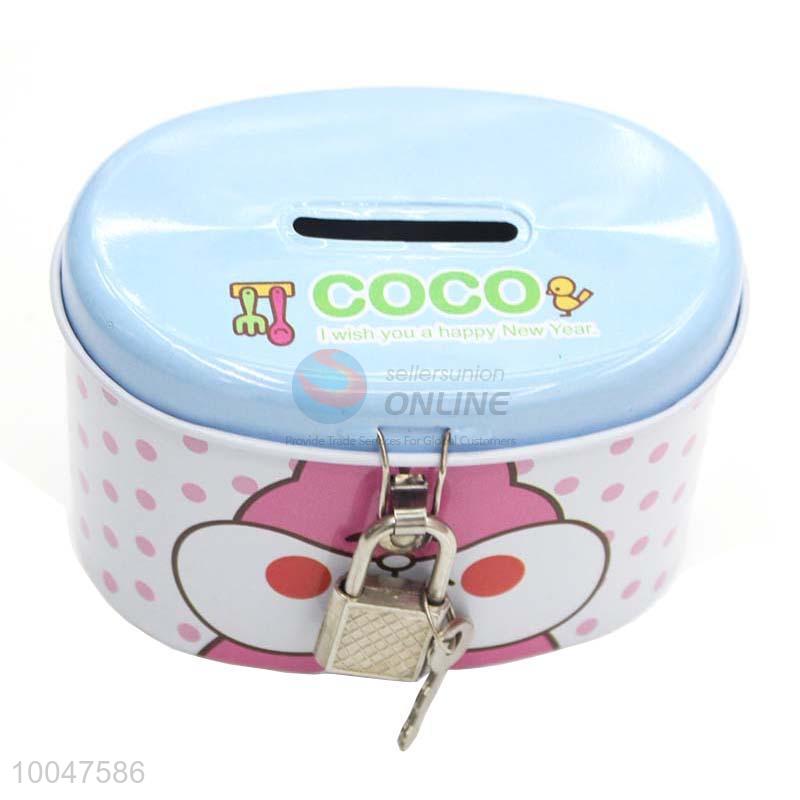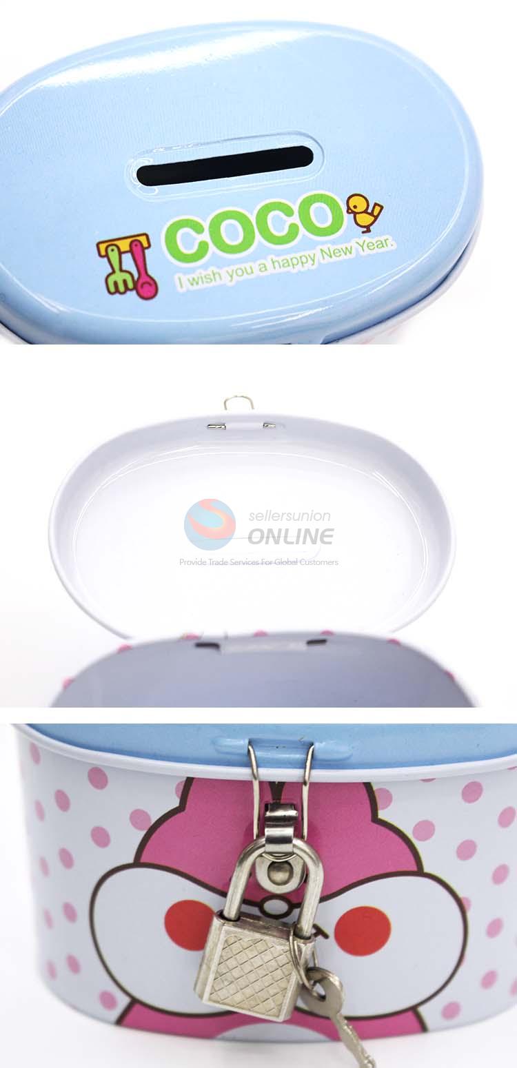 Cute blue tinplate money box/saving pot with lock