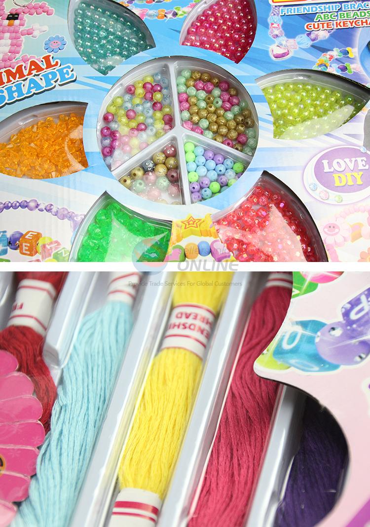 Quick details: | DIY children's intelligence bead is a good educational tool, can help children improve hand eye coordination, improve the practical ability, better play to the child's imagination, training children's creativity and logical thinking. A complete spectrum of translucent and iridescent beads, all contained in a clear, plastic purse, will create eye-catching jewelry. More than 500 beads featuring a variety of shapes and colorful stringing cords are included. A perfect activity for parties or rainy days! |