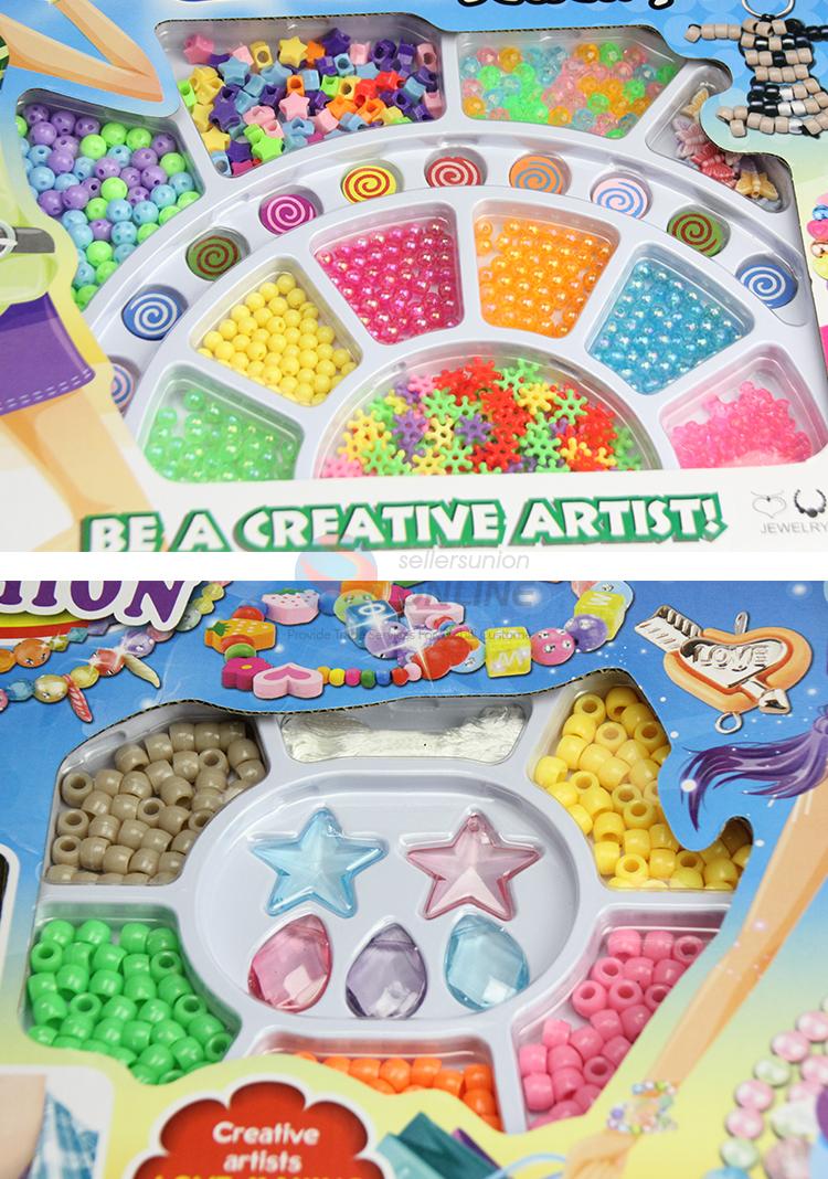 Quick details: | DIY children's intelligence bead is a good educational tool, can help children improve hand eye coordination, improve the practical ability, better play to the child's imagination, training children's creativity and logical thinking. A complete spectrum of translucent and iridescent beads, all contained in a clear, plastic purse, will create eye-catching jewelry. More than 500 beads featuring a variety of shapes and colorful stringing cords are included. A perfect activity for parties or rainy days! |
