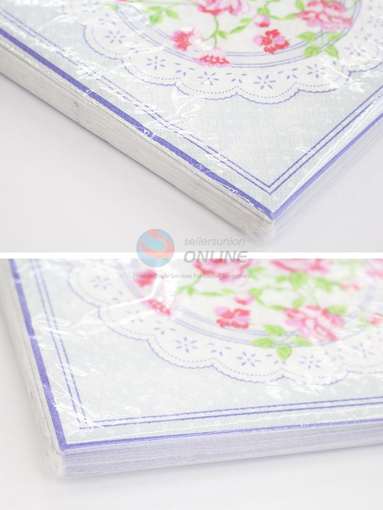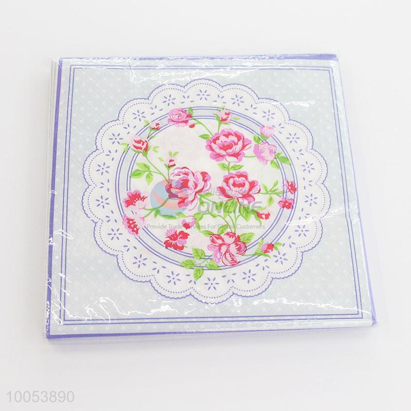 Utility 16.5*16.5CM Disposable Eco-friendly Three-ply Paper Napkins with Colorful Flowers Printed Pattern