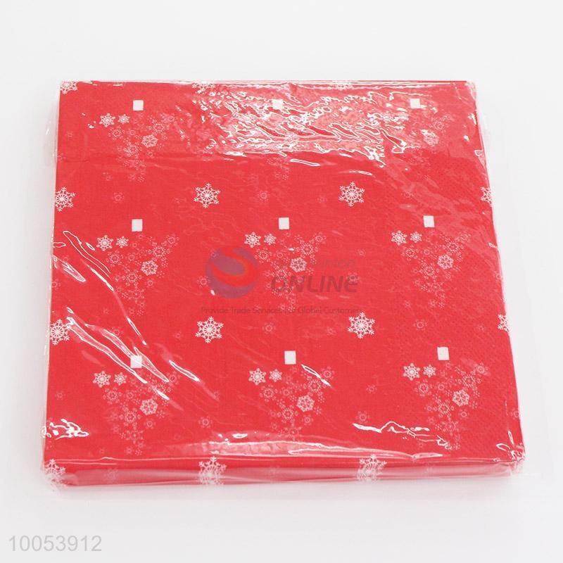 Hot Sale 16.5*16.5CM Disposable Eco-friendly Three-ply Paper Napkins with Red Pattern