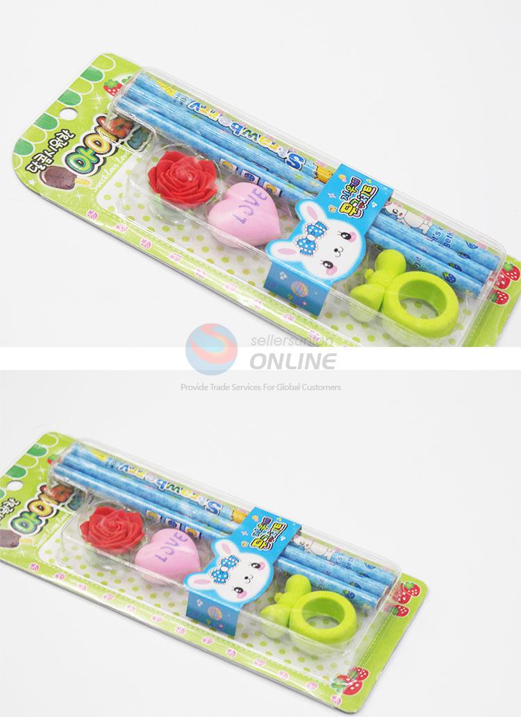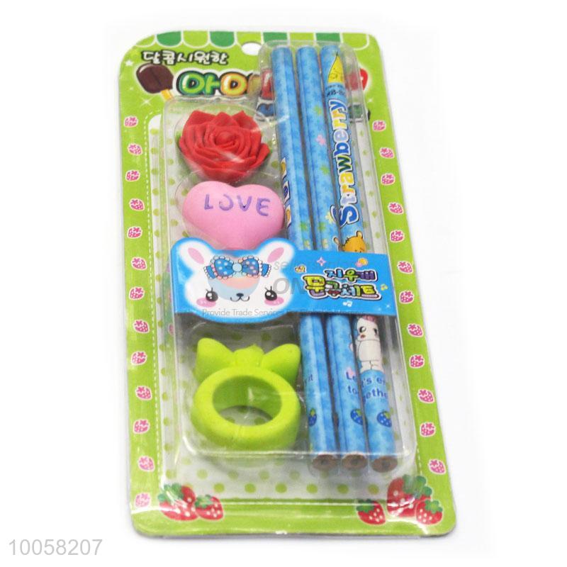 Wholesale Red Flower Pink Love Shape Suit Eraser With Pencils