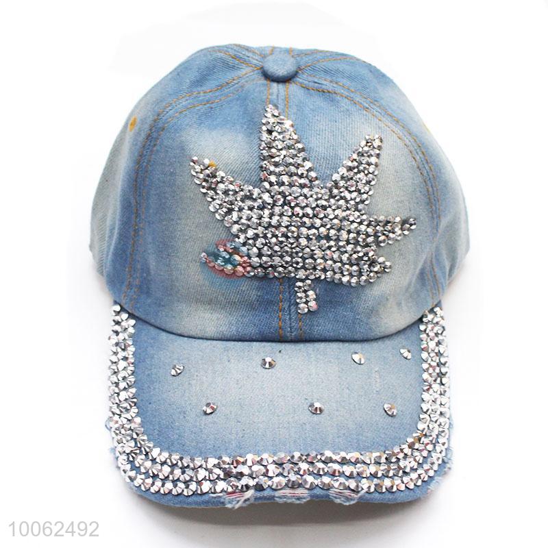 Fashion printing leaf diamond-studded cowboy hat baseball hat peak cap for sale