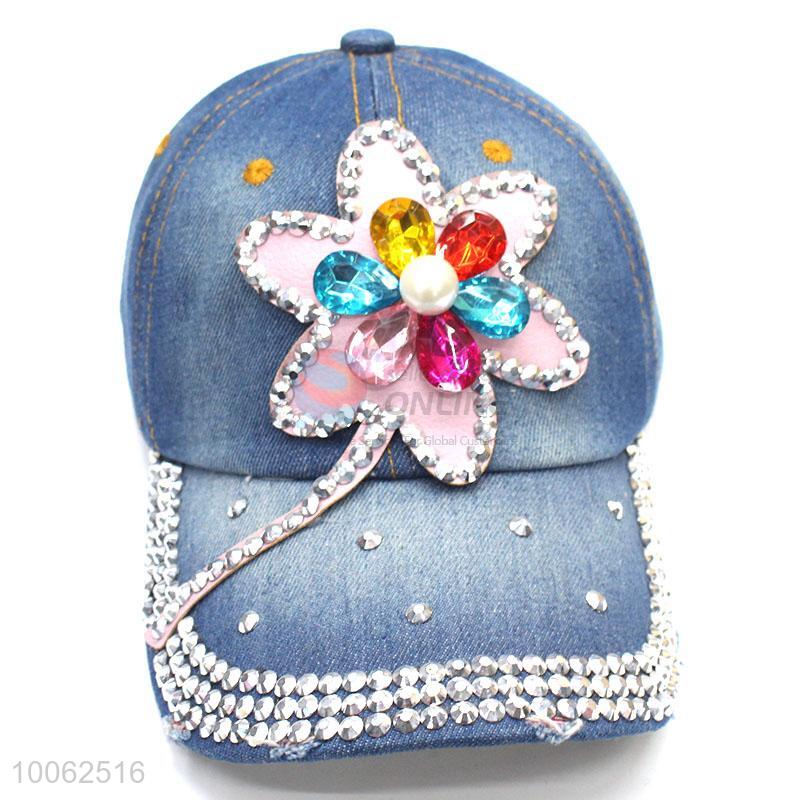 Fashion colorful diamond-studded flower shape cowboy hat peak cap