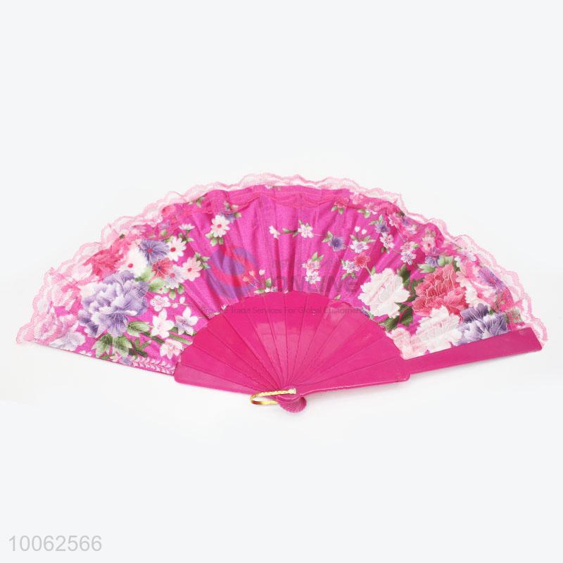 Hot Sale Spain Style Plastic&Satin Purple Handle Hand Fan