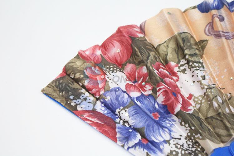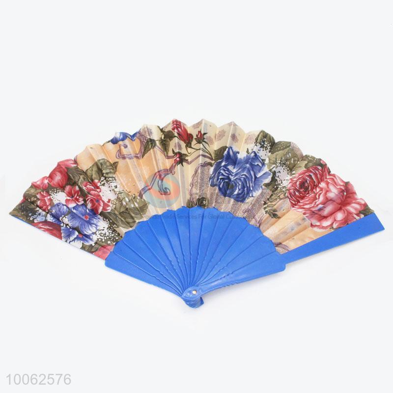 Hot Sale Spain Style Plastic&Satin Blue Hand Fan/Flat Fan