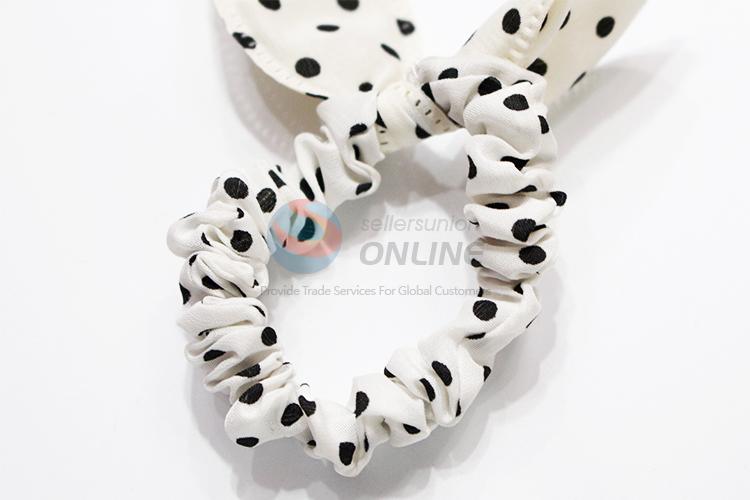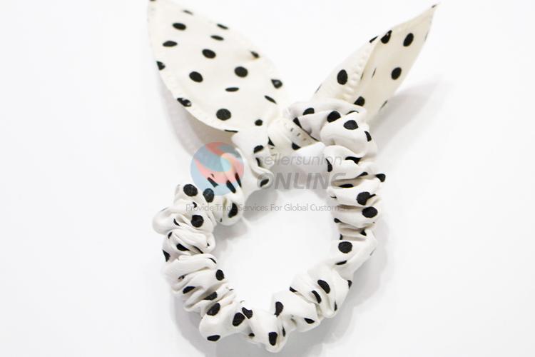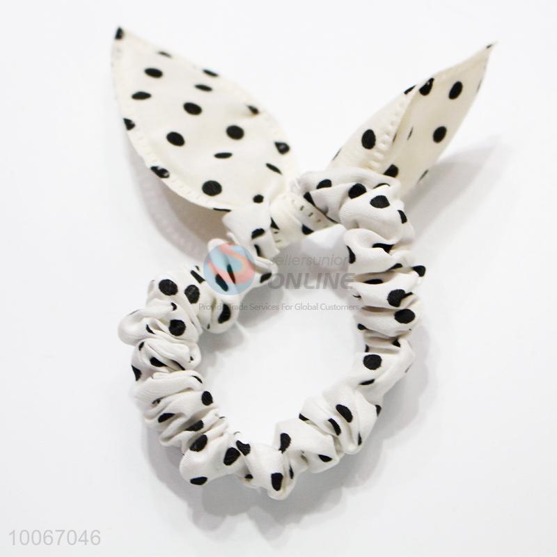 Dotted White Hair Ring with Rabbit Ears