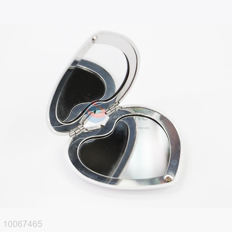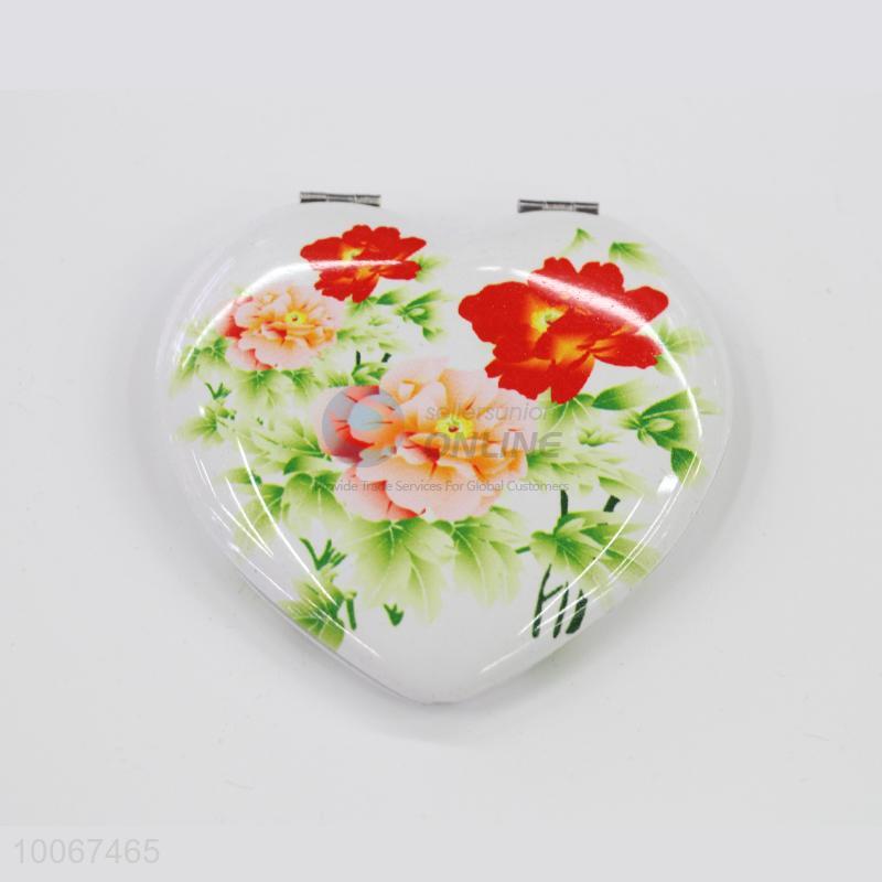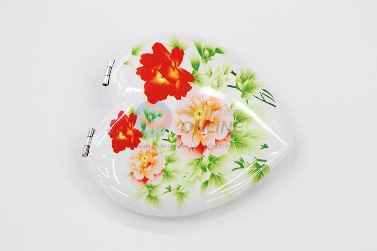 Pink Flower White Heart Shaped Foldable Pocket Mirror