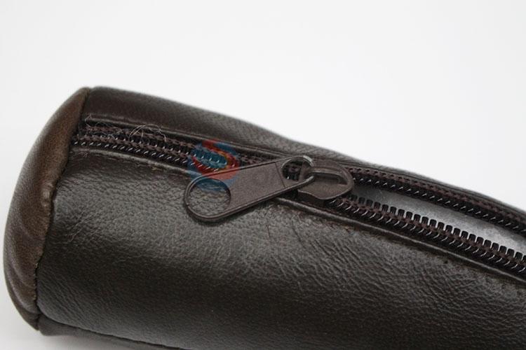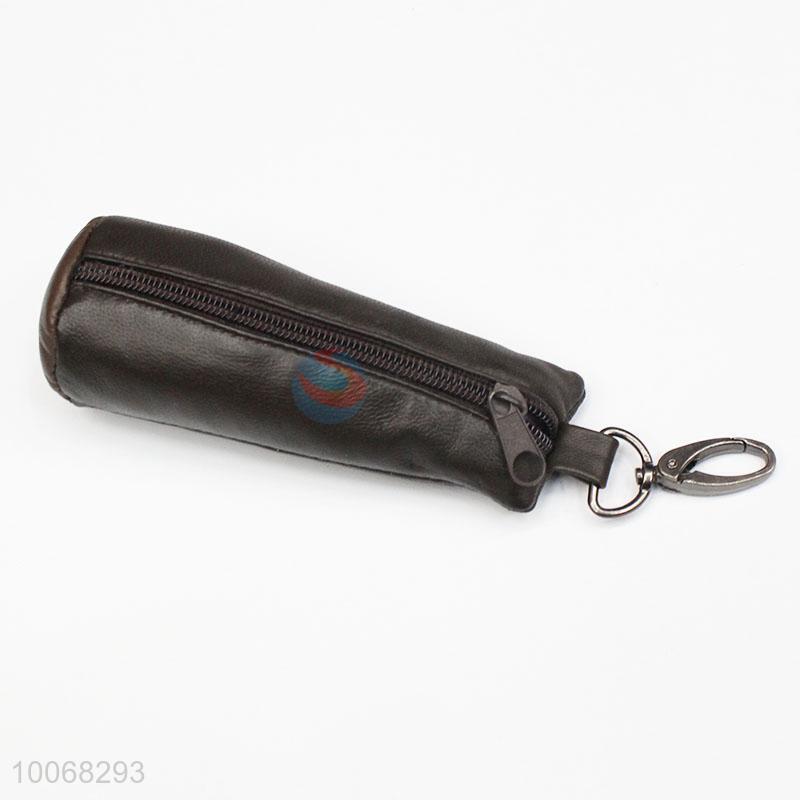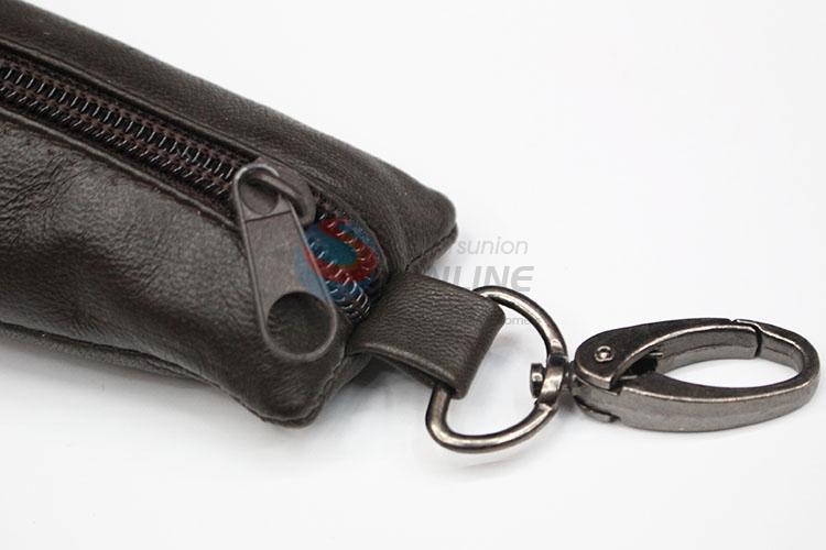Brown faux sheepskin leather coin purse with D buckle