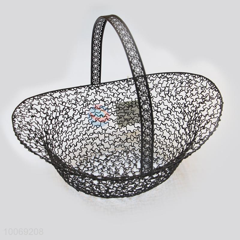 Black iron wire fruit basket with handle