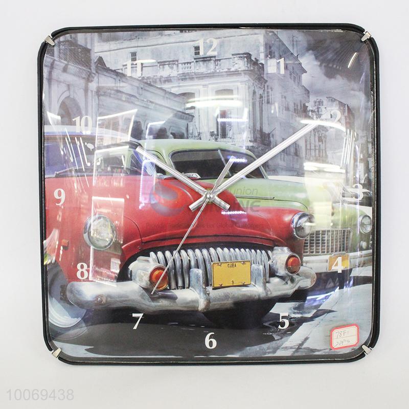 Hot sale squre plastic wall clock with car pattern