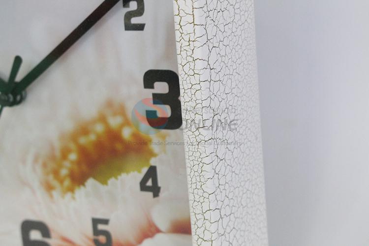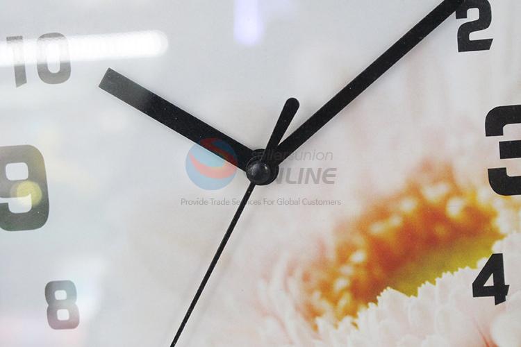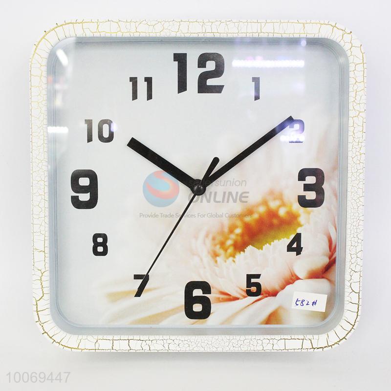 Square plastic wall clock with flower pattern