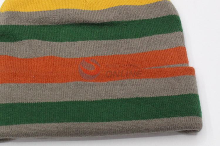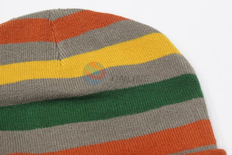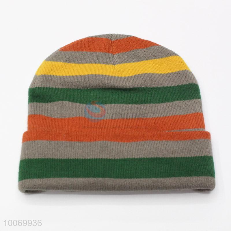 Hot Sale Acrylic Knitted Beanie Hat with Colorful Stripes