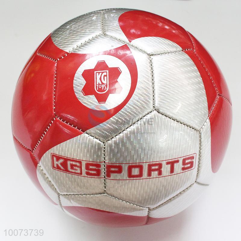 Cool design silver-red NO.5 machine stitched PU football