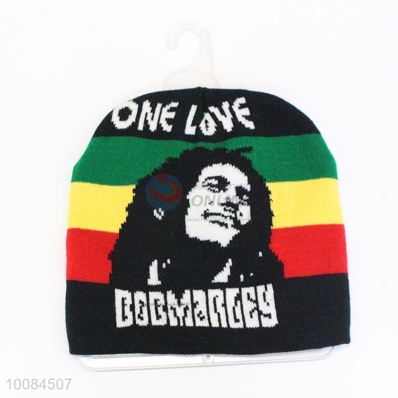 Striped Jacquard Acrylic Fiber&Polyester Knitted Cap/Hat