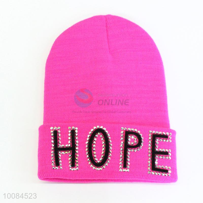 Cheap Letter Printed Polyester Knitted Hat/Cap With Diamonds