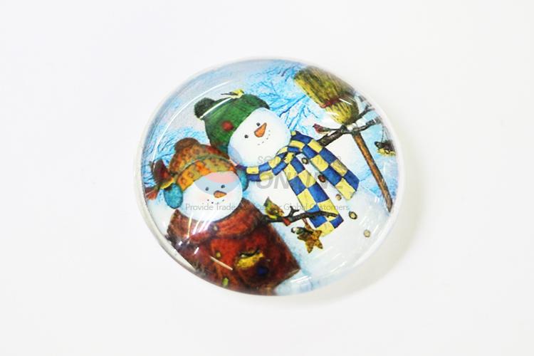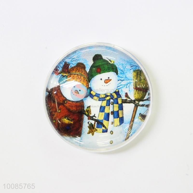 Snowman Round Crystal Glass Fridge Magnet