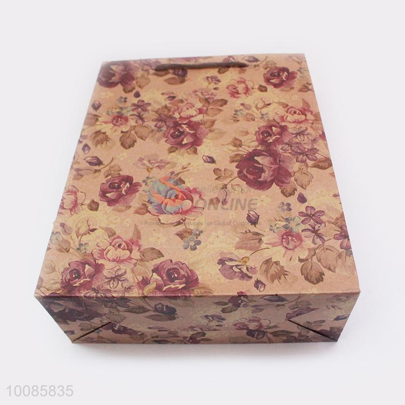 Popular Flower Pattern Kraft Paper Handbag/Gift Bag
