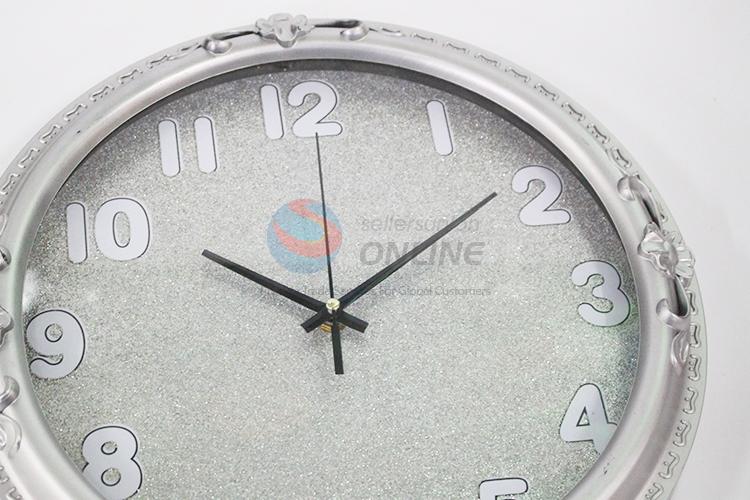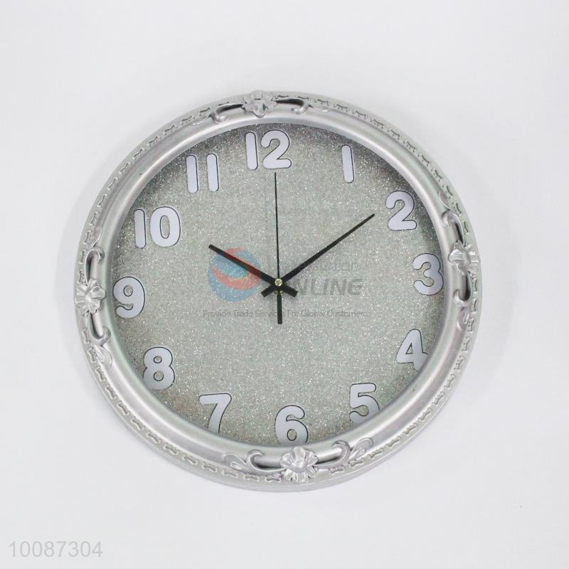 Cheap round silver plastic wall clock