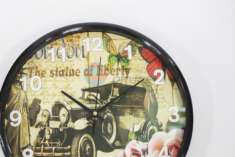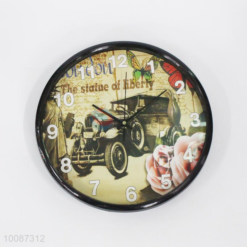 Black edge round plastic wall clock