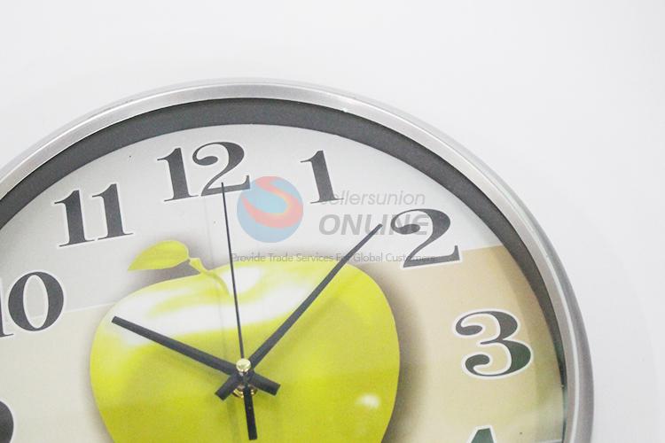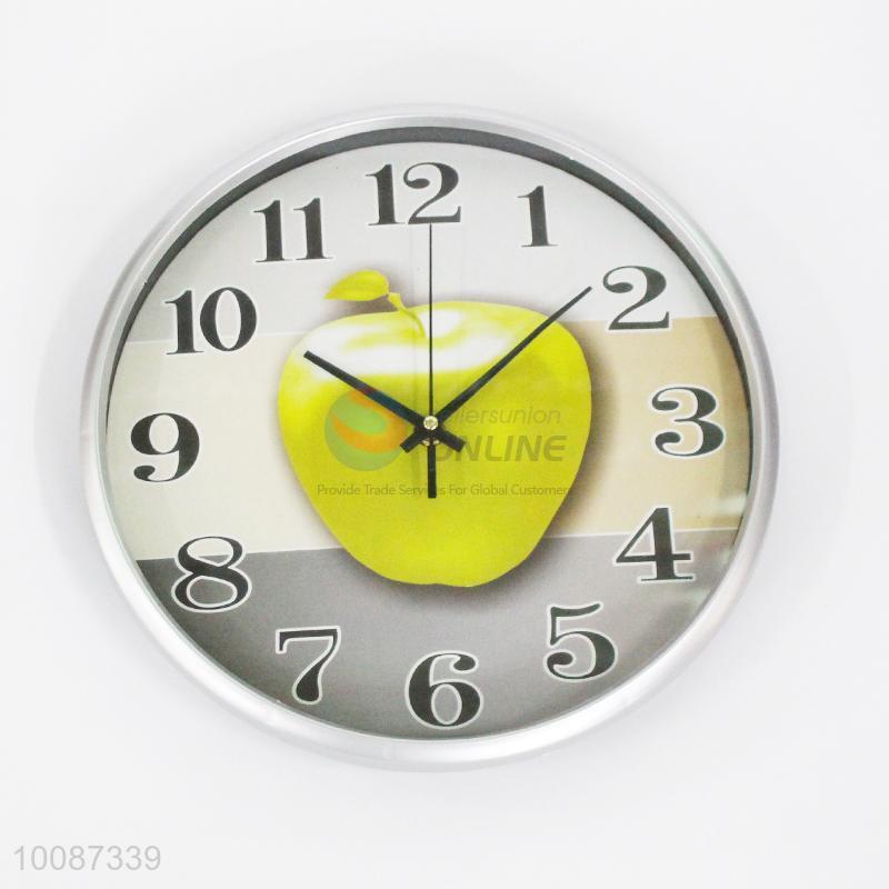 Silver edge apple pattern round plastic wall clock