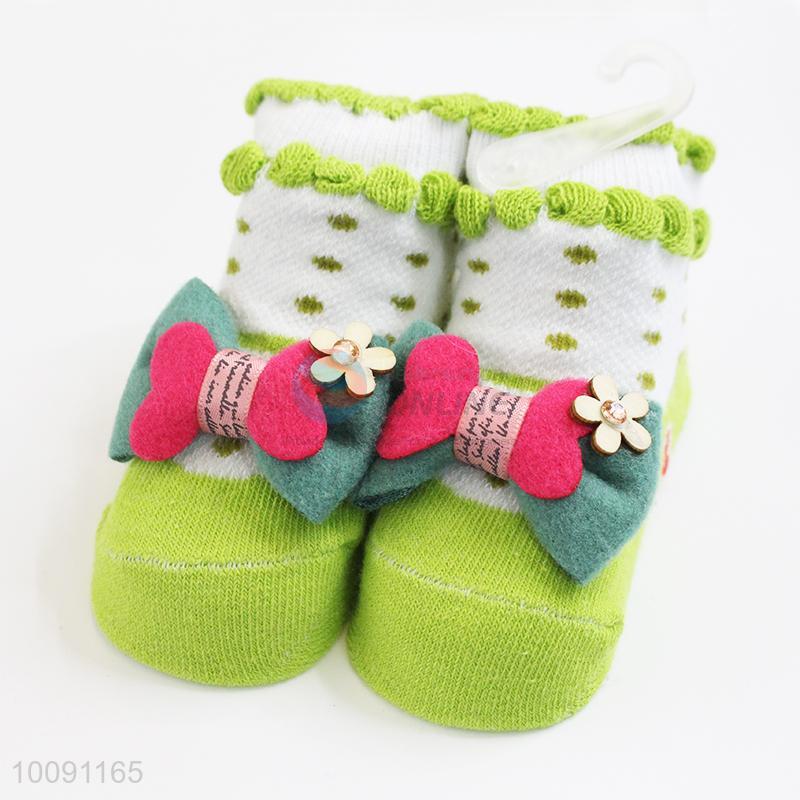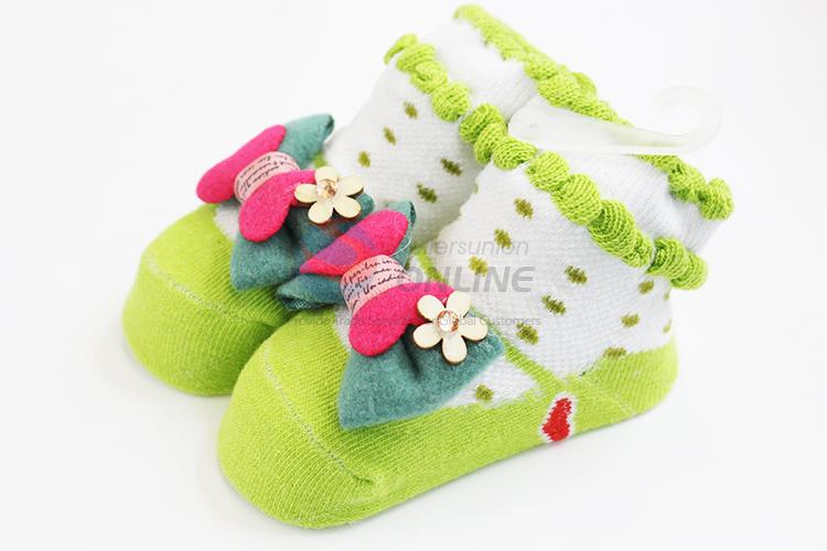 3D Green Bowknot Anti Slip Cotton Baby Sock/ Soft Baby Socks