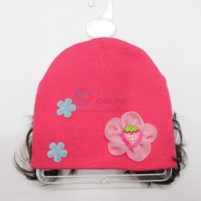Fashion baby handwork hairpiece hat children knitted warm cap