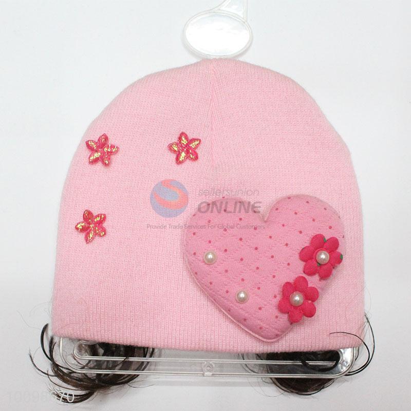 Knitted fashion winter knitting patterns children hat with hairpiece