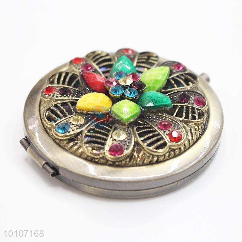 Exquisite Bronze with Colorful Rhinestone Pocket Cosmetic Mirror