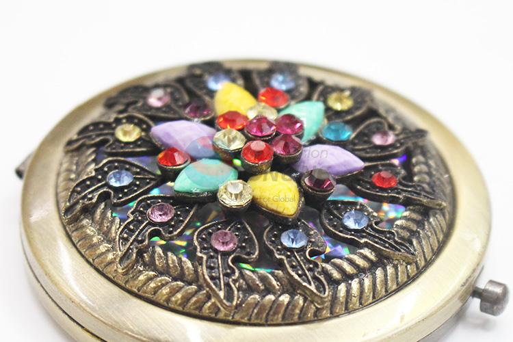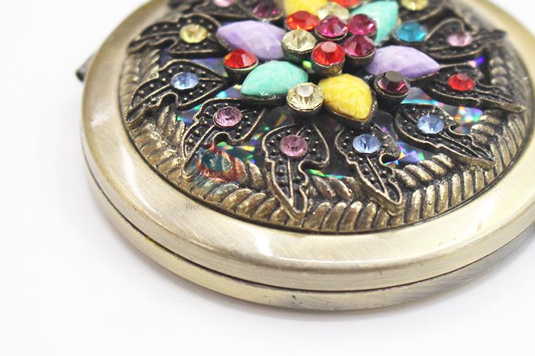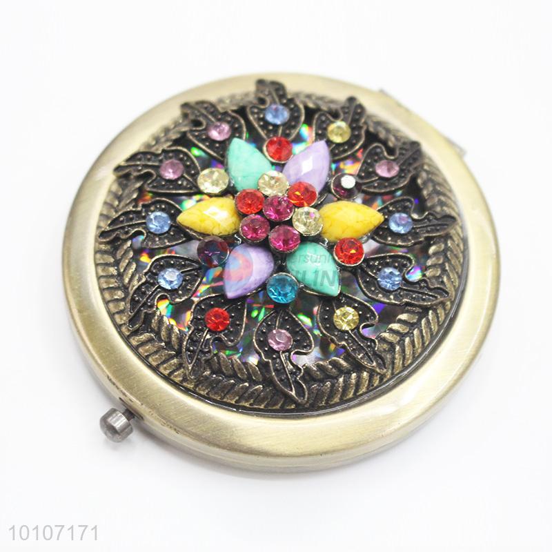 Flower Shape with Colorful Rhinestone Pocket Cosmetic Mirror