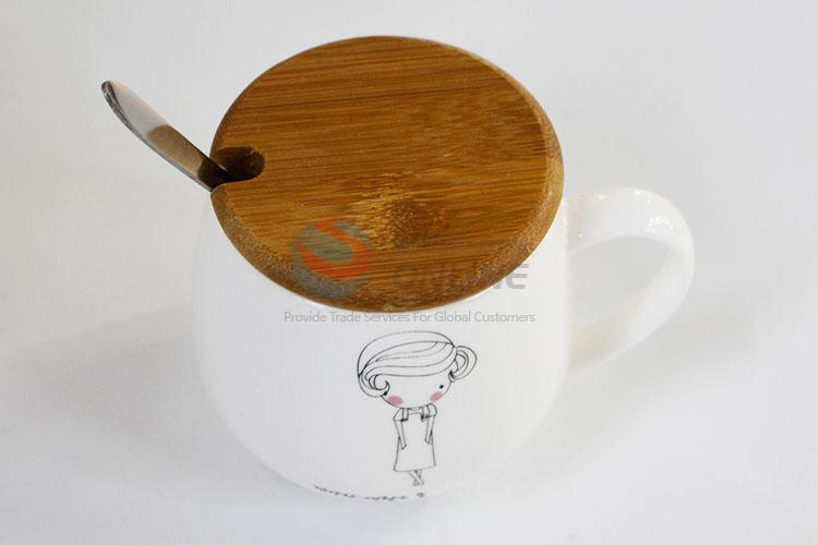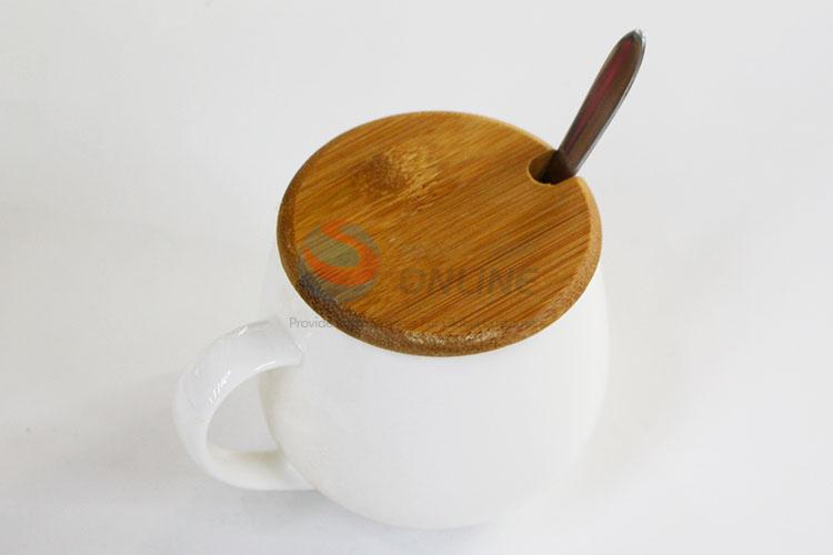 White Ceramic Coffee Mug With Spoon and Lid