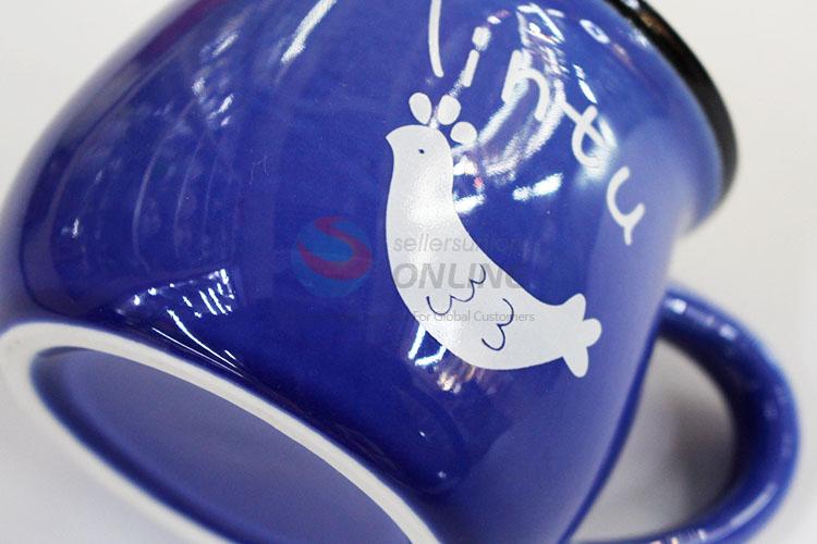Cartoon style dark blue round milk tea cup