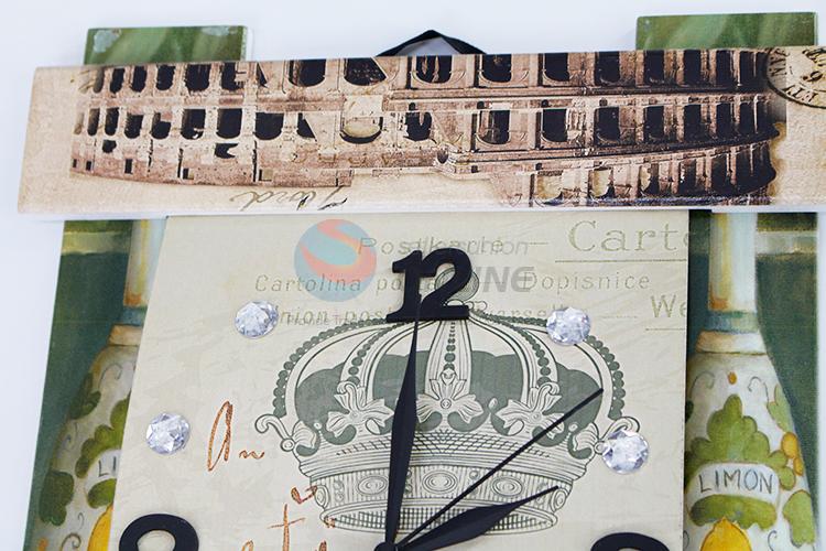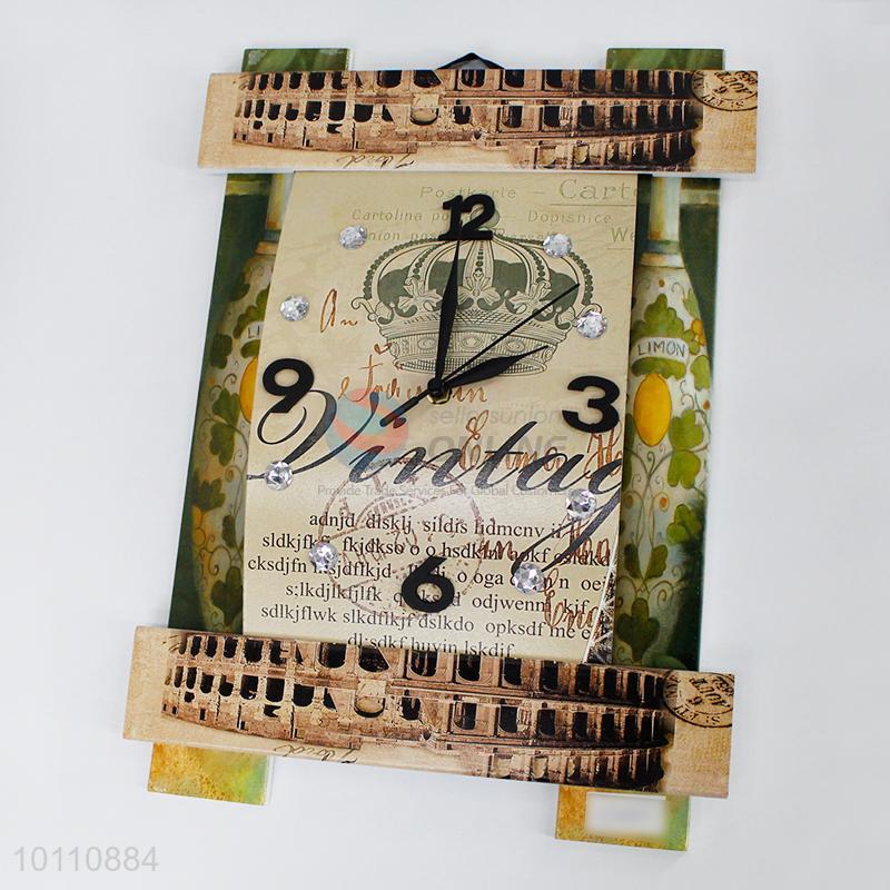 High Quality Antique Wooden Wall Decorative Clock in Rectangle Shape