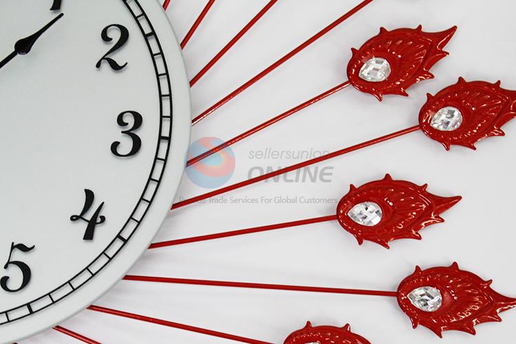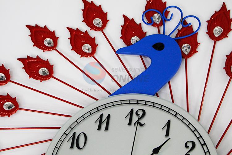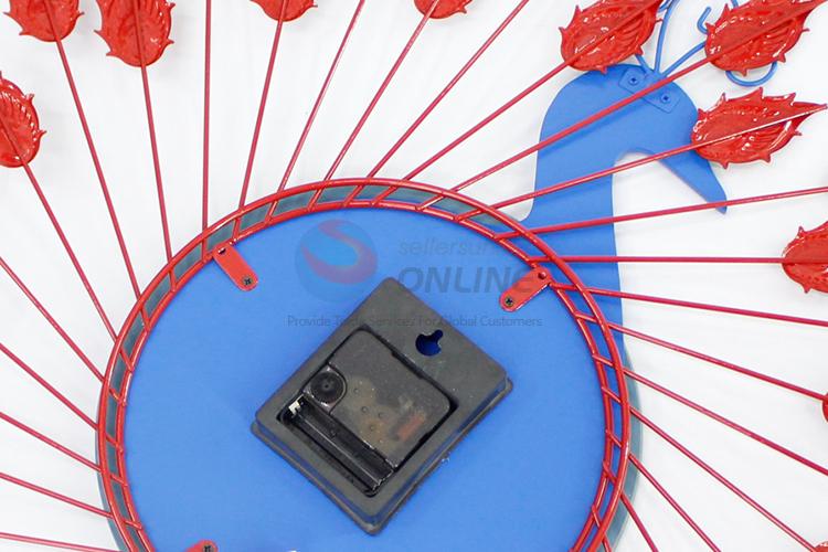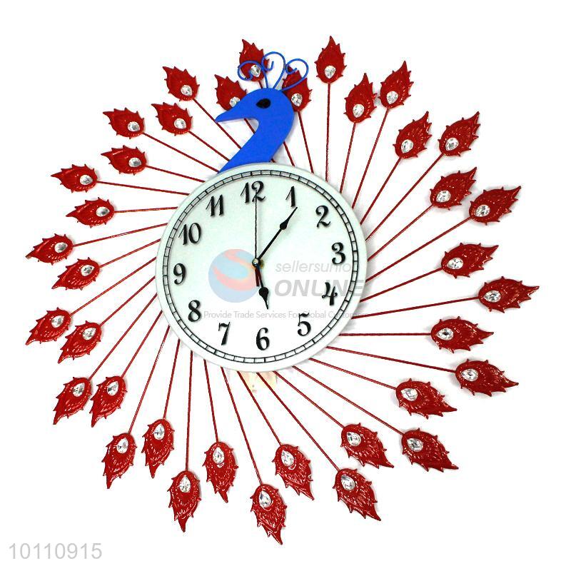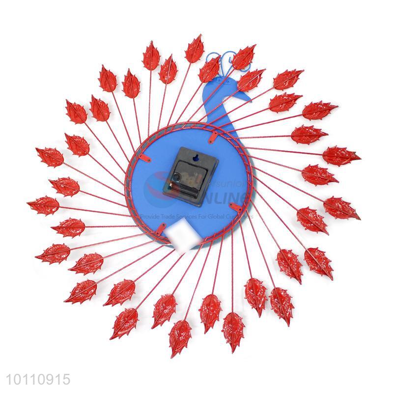 Red Creative Home Decorative Iron Large Wall Clock in Peafowl Shape