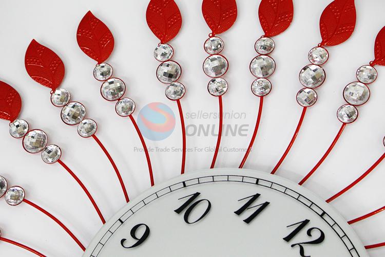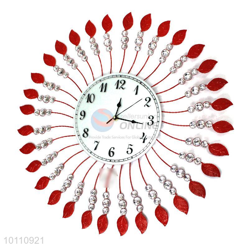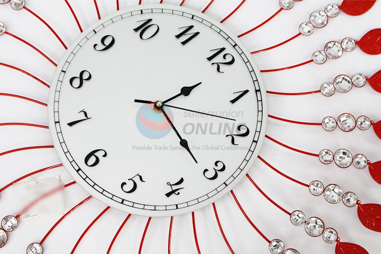 Hot Sale Round Crystal Red Iron Wall Clock for Home Decoration
