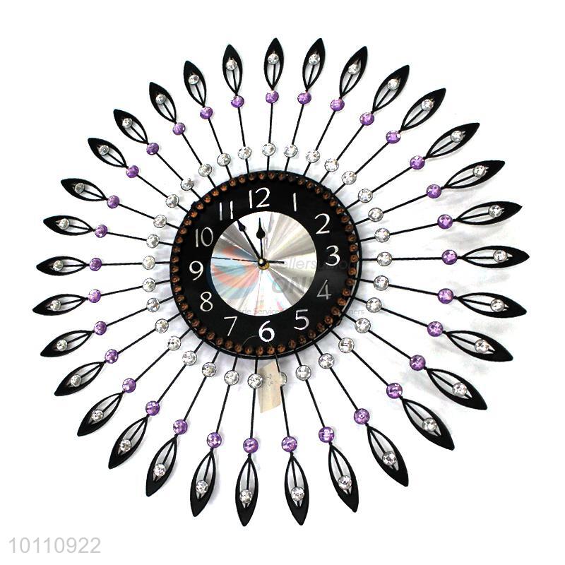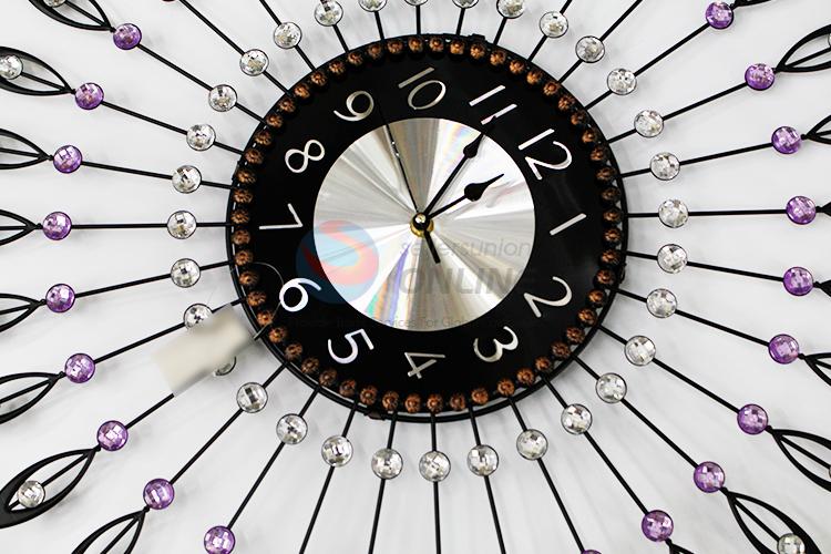 Fashion Style Round Crystal Iron Wall Clock for Home Decoration